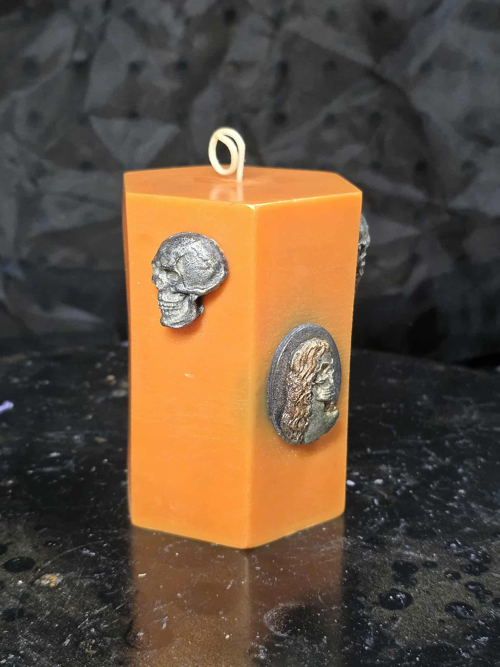 Pillar candles are made of harder wax so they stand/sit without a container. We have an eclectic collection of pillar candles for you to browse but you can always use our Custom Order form above to create your own.